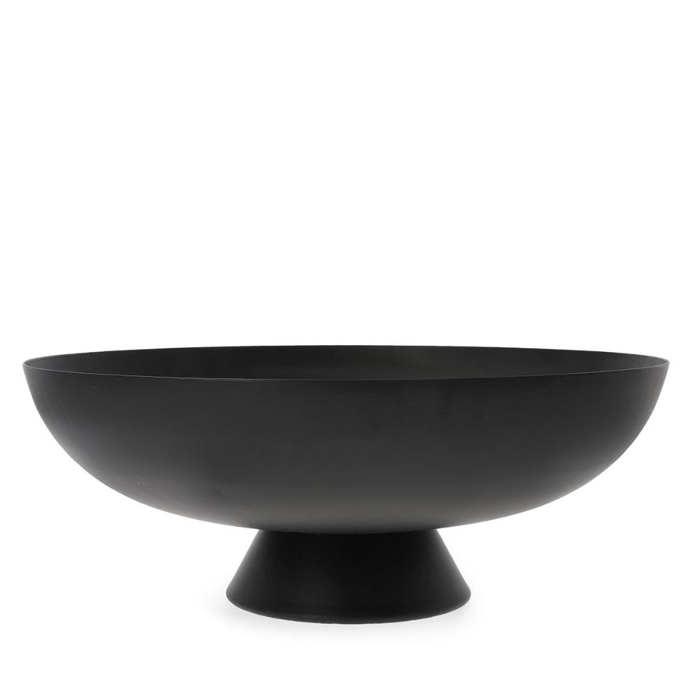 Purpose The ROH decorative bowl is a great decorative design element. It will look good not only in the dining room, but also in the living room, kitchen or even in the office or bathroom. You can keep jewellery, colourful bath balls or other small items in it. The ROH bowl will work well in modern, art deco or glamour interiors. The item is a sensational gift idea for a loved one. Features The ROH decorative bowl has a minimalist design and a simple shape. The bowl has a circular shape, which is held on a short base. The whole design is kept in a black colour with a matt finish. The product has a diameter of 35.5 centimetres, allowing it to hold quite a lot of small items. Also available in gold. Material The ROH decorative bowl is made of high-quality metal painted black. The material is characterised by its durability and resistance to damage. It will serve a long time as an impeccable decoration.