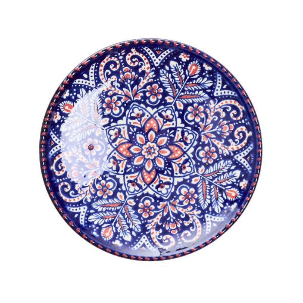 Add a colorful accent to your table with the elegant SANDOS plate. In beautiful navy blue and burgundy colors and sophisticated patterns, it is perfect for serving smaller meals and snacks. Delicately decorated edges add elegance and finesse, making the plate not only a dish, but also a decorative element.