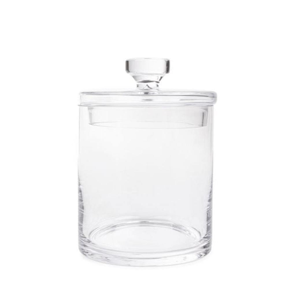 Capacious packaging Decorative lid Large glass cotton bud container with lid 12 x 18 cm The glass container has a round base and a cylindrical shape. The classic shape is decorated with a filigree lid. Thanks to its universal form, you can decide for yourself how to use it. The product is 12 cm wide and 18 cm high. Purpose The HOMLA SOPPO container is perfect for your bathroom as a container for cotton wools or other cosmetic utensils. The glass, transparent material will particularly suit minimalist and modern arrangements. Its universal character, however, gives you room for manoeuvre - you can decorate it as you wish. Material The SOPPO container is made of glass, so you can maintain proper hygiene, as glass is impervious to moisture and odours. Glass containers are also safe, as they are waterproof and are not affected by many chemicals.