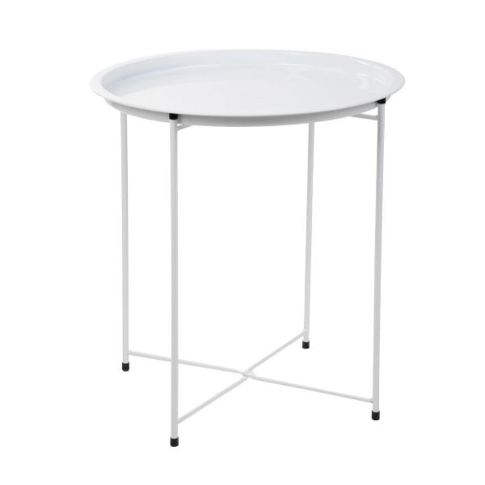 You can use STALDIS as a coffee table, bedside table or side table in the living room. Placed near the sofa, it will allow you to conveniently place a cup of coffee and a plate of snacks, while in the bedroom it will be perfect for putting away your phone, book, or glasses. Thanks to its white color, it easily fits into bright arrangements in modern, Scandinavian and industrial styles. You can easily fold the table for convenient transport and storage when not in use. Just lift the table top and turn the base so that its edges touch each other.