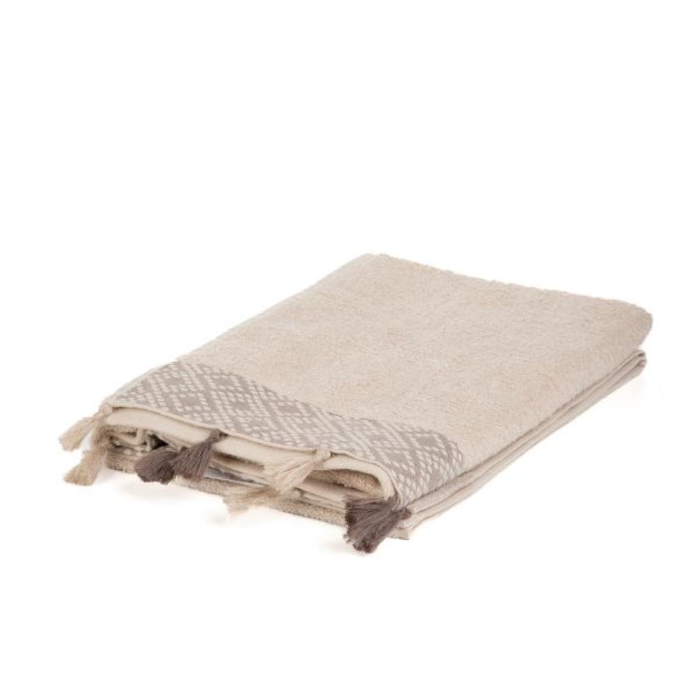 Soft cotton Excellent absorbency Beautifully finished edges Size: 70 x 130 cm Beige towel 70 x 130 cm The TERI towel is not only a practical piece for the bathroom, but also a stylish addition that will add charm and elegance to any room. It will blend in perfectly with a variety of interior design styles, from modern to traditional. It is a perfect accessory that provides comfort and functionality during daily hygienic activities. Purpose The TERI towel will be perfect as a towel to dry your body after a bath or shower, providing comfort and convenience. The beige colour is versatile and the decorative pompoms add elegance and charm, creating a fashionable look. It is perfectly absorbent and pleasant on the skin, making it ideal for any occasion. Material The towel is made of high-quality cotton with a weight of 450 g/m2. The material used is soft and gentle on the skin and has excellent absorbency and durability. The sides of the towel have been carefully hemmed to prevent fraying.