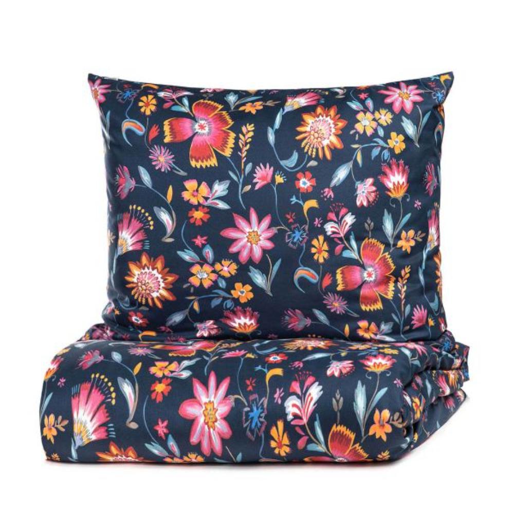 Purpose The VABEL patterned bedding set is a product for lovers of decorative elements rich in various colors. The combination of lively, well-coordinated colors with a floral motif will perfectly highlight arrangements in an eclectic style. Characteristics The VABEL bedding set beautifully combines the colors of the motif with the main color of the product. The completely navy-blue bedding is decorated with numerous flowers of rich colors, shapes, and sizes. The set includes a duvet cover measuring 160x200 cm and two pillowcases measuring 70x80 cm. The bedding is closed with a zipper. Material The material used for the production of the VABEL line set is 100% polyester. The characteristic features of this raw material are high resistance to mechanical damage, sunlight, and stains. Thanks to these features, the product will serve for many years without losing quality. It is recommended to wash at a temperature not exceeding 60°C.