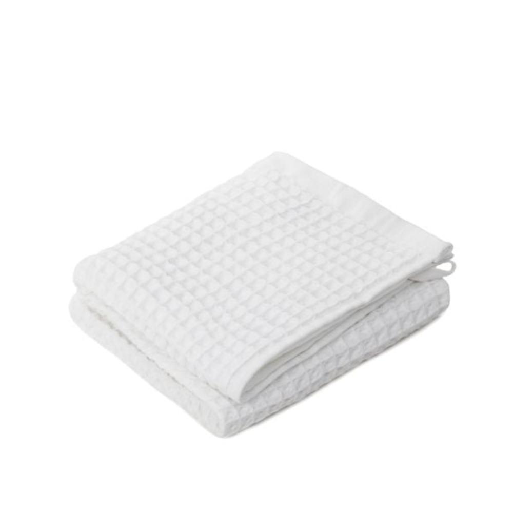 Soft and absorbent cotton Dimensions: 50 x 90 cm Hanging handle Waffled fabric Bathroom towel 50 x 90 cm cotton white The HOMLA VAFFEL towel perfectly combines a stylish look with excellent qualities of use. Carefully made from soft vaffel fabric, it looks beautiful in the bathroom, absorbs plenty of moisture and is very gentle on the skin. Thanks to the hanging bracket, you will place it anywhere using bathroom hooks. Purpose VAFFEL towel measures 50 x 90 cm , so it is best suited to wiping your face and hands during the morning and evening toilet. It is advisable to hang it near the washbasin so that it is easily accessible. The towel's striking appearance also makes it a decorative element in the bathroom, especially when rolled up and placed on a shelf or towel rack. Material The towel is made of waffled cotton fabric. It is soft and delicate, yet durable.