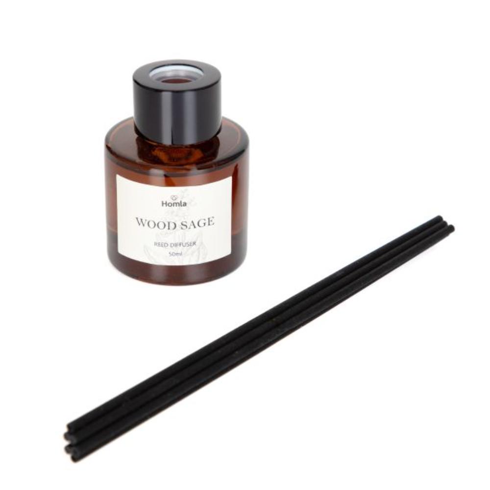 The beautiful scent of forest sage Adjustable odour intensity Aroma enclosed in a stylish container Capacity: 50 ml Aroma diffuser — forest sage Smell is one of the main elements that we pay attention to when we enter the room. The HOMLA VERDE aroma diffuser will mite the pleasant scent of forest sage in your home. The aroma is enclosed in a beautiful packaging made of brown-tinted glass, thanks to which the diffuser is an excellent arrangement accessory. Destiny The VERDE aroma diffuser will be perfect for placing in the living room, hallway, bedroom or bathroom. With the sticks that come with it, you can easily adjust the intensity of the fragrance – the more you immerse them, the stronger the aroma will be. Material The diffuser is made of glass in which fragrances mixed with water are placed. The set includes sticks that soak up the aroma and then spread it around the room.