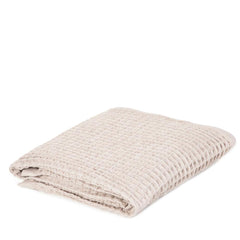 Soft and absorbent cotton Dimensions: 70 x 130 cm Hanging handle Waffled fabric Bath towel 70x130 in cotton Bath towels are essential accessories in every bathroom. In order to fulfil their role properly, they should be characterised by their absorbency and pleasant feel. This is the VAFFEL towel, which is not only functional, but also aesthetically pleasing. The towel is maintained in a subtle beige colour scheme, which gives it elegance. Its decoration is the waffle-textured fabric itself. Purpose The VAFFEL towel is perfect for everyday use, although thanks to its large size you can also take it to the beach during your holidays. A handle has been sewn into the edge of the towel so you can easily hang it on a hook to keep it handy after your bath. The VAFFEL towel is also available in a smaller size - together they will make a great set. Material The VAFFEL towel is made of 100% cotton, which is soft and cosy, and is also excellent at absorbing water and drying the body. The material used is characterised by durability and is resistant to damage.