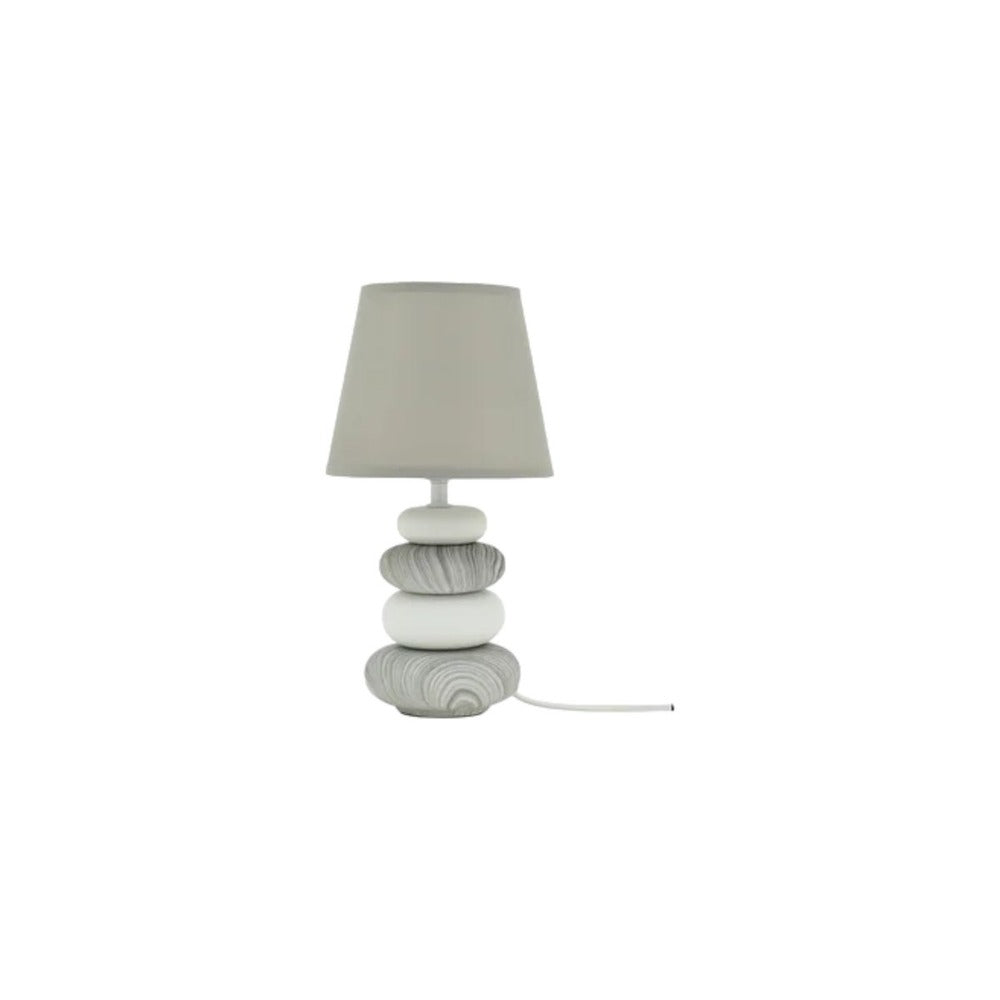 Type of product: Table lamp without light source Composition of the product: Ceramic 50%, Cotton 25%, PVC 5% Maximum power per bulb: 40W Material of the lamp shade or diffuser: Cotton Type of base: E14 electrical appliance with double insulation Voltage: 230V Type of switch: Rocker push button on the cable Structure finish: Painted Power supply: Mains power Compatible bulb type: Incandescent, LED Shape of the suitable bulb: Small globe Structure material: Ceramic Standard or label: CE Protection rating: IP20