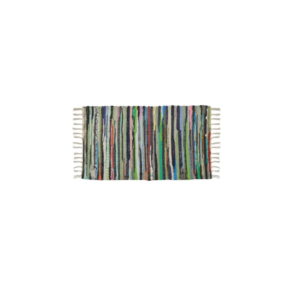 The Neis rug is ideal for decorating and making a room more welcoming. The rug participates in an ecological approach and is entirely handmade from pieces of fabric from textile creations. With its bright colors and unique pattern, it will bring a bohemian touch and cheerfulness to your interior. Maintenance is very easy, just vacuum regularly. Dimensions: 50cm x 80cm