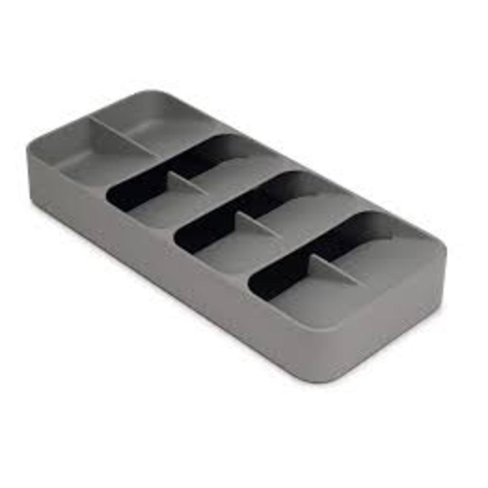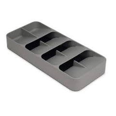 The unique design of this cutlery tray features angled compartments that layer on top of each other, enabling over 48 pieces of cutlery to be stored in less space than a conventional cutlery tray holding much less. Items can be placed inside either head or handle first, but the design also features handy icons for easy identification. Non-slip feet on the base stop the unit from sliding around in your drawer. Suitable for drawers with a minimum height of 8 cm (3¼ inches).