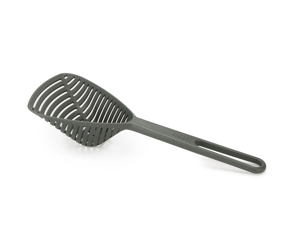 Crafted from glass-filled nylon, this Joseph Joseph spoon colander is heat resistant up to 200°C / 392°F and allows you to scoop and drain your food straight from a hot pan.