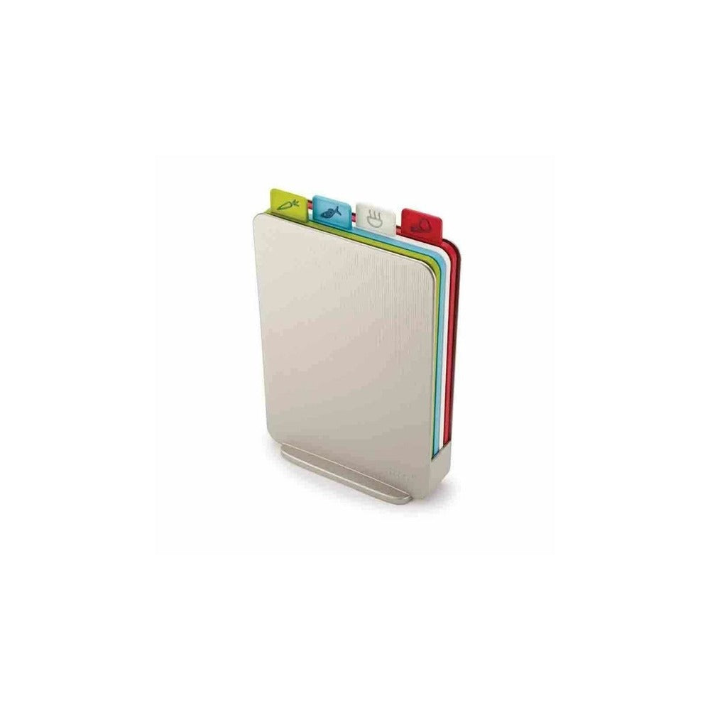 Joseph joseph index chopping board set, mini. Set of 4 colour-coded, non-slip chopping boards plus storage case. Designed to prevent cross-contamination of different food types. Illustrated, index-style tabs on boards indicate which food type they should be used for - raw meat, vegetables, fish or cooked food. Easy-clean, knife-friendly cutting surfaces. Boards - dishwasher safe. Care and use: please note, like all plastic chopping boards, the knife friendly surface of these boards may mark slightly during use. A global bestseller, index is the original and best colour-coded chopping board set, designed to help reduce cross-contamination when preparing food.