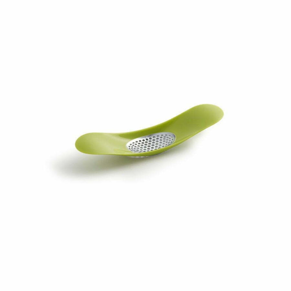 By using downward pressure and a rocking motion, this tool breaks up garlic cloves quickly and easily, forcing the pieces up through the mesh of holes in its base. The crushed pieces are then held in the curved design, allowing them to be spooned or scraped conveniently into a pan or bowl. Additional cloves can also be crushed at this stage before emptying. Rocker is easy to clean under running water but is also Dishwasher safe. Available in a range of colours or in a brushed metal finish. Dishwasher safe.