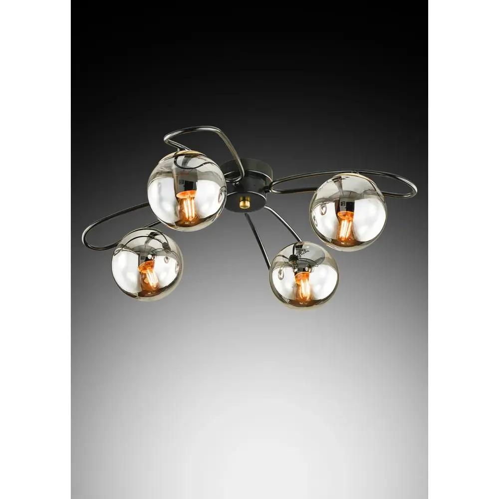 The Karin series is one of a kind! Made of black metal with satin gold details, this ceiling lamp gives a really strong character to your environment thanks to the smoked glass. The position of the four glass spheres is excellent for having diffused and homogeneous lighting in the room. Perfect in both the living and sleeping areas, the Karin ceiling light finds its place in your favorite rooms, illuminating and furnishing them with refinement and elegance. It works with four E27 bulbs of 60W max not included.