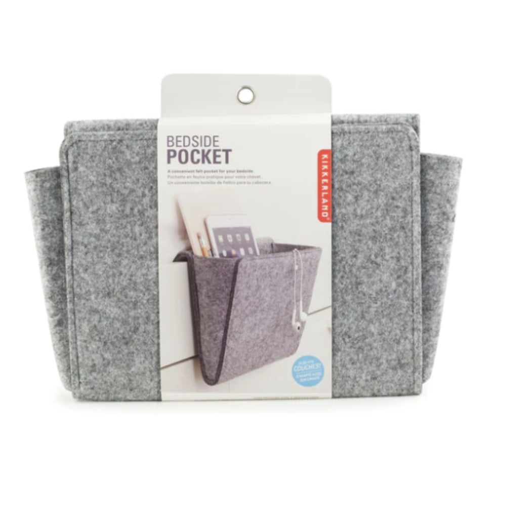 This soft and secure pocket is the perfect place to keep all your bedside essentials safe. Fits all couches and beds. Material: synthetic felt, cardboard product: 28,2cm X 22cm X 11,5cm