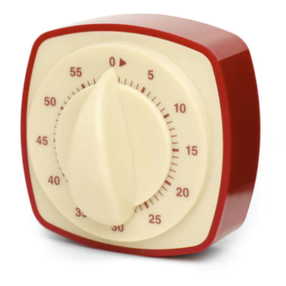 Turn back the hands of time with this retro magnetic kitchen timer. Simply wind the dial to the 60-minute mark, then re-adjust to the desired time and let the timer do the rest. Mechanical timer, no batteries. Material: abs, rubber magnet product: 6,5cm X 6,5cm X 4,3cm.