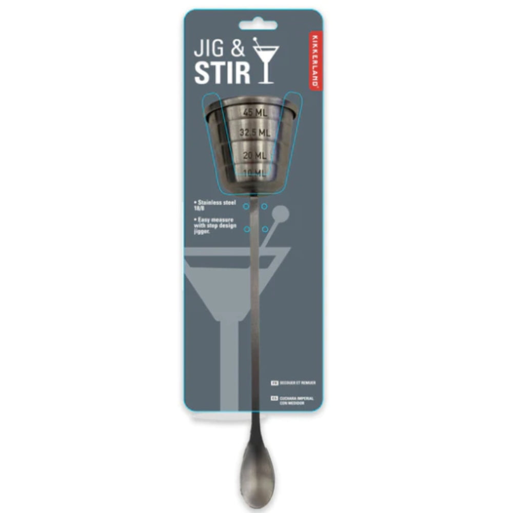 Double duty cocktail maker. This spoon serves as a jigger and a stirring spoon. This spoon has a graduated stepped design along with 1/2 oz, 1 1/2 oz, and 1 oz indicators.