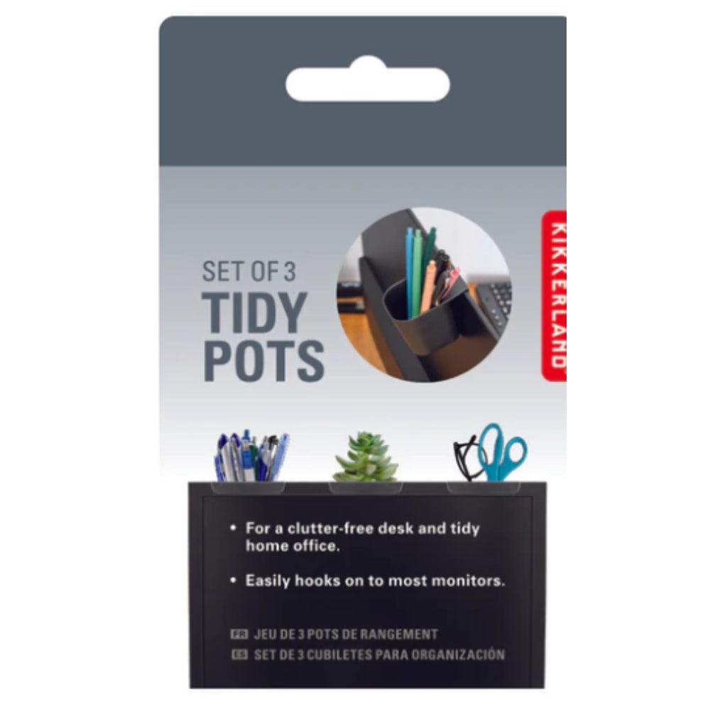 Desk storage gets smart with this set of 3 pots. Stash whatever you need to put away and easily access it, while keeping it all organized. Hang from your computer screen and let the decluttering begin. Great for plants too.