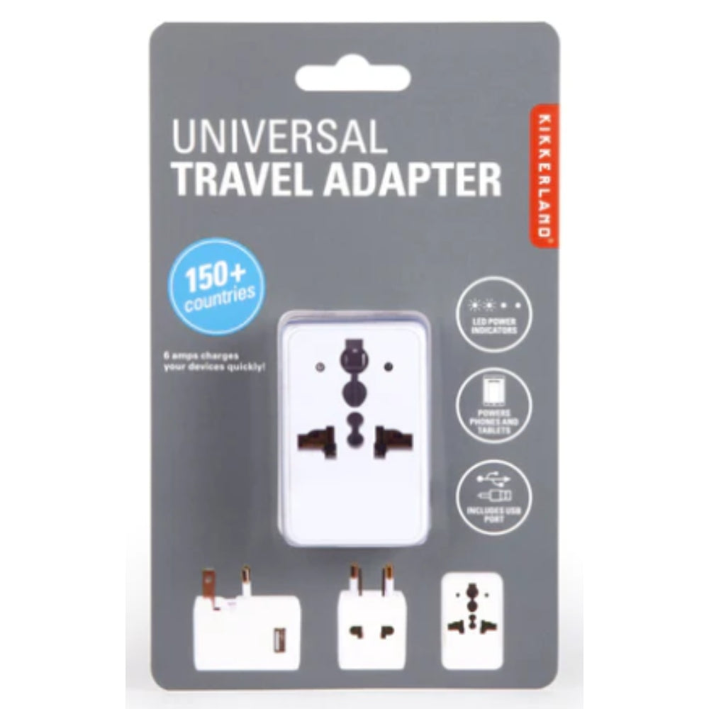 Compatile in over 150 countries, this universal ravel adapter is a must-have for all world travellers! Includes 1a usb port. Material: pc, copper product: 6,1cm X 8,7cm X 4,7cm.