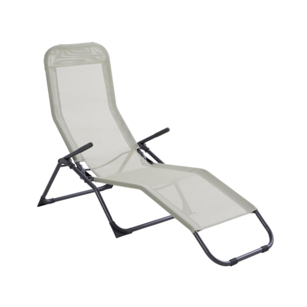 2 positions sunbed Made of steel with powder coating in green color Textilene material in 1x1 weaving with 3pcs/strap Size: 139/165.5x60x72.5/95cm Comfortable lounging option for outdoor use