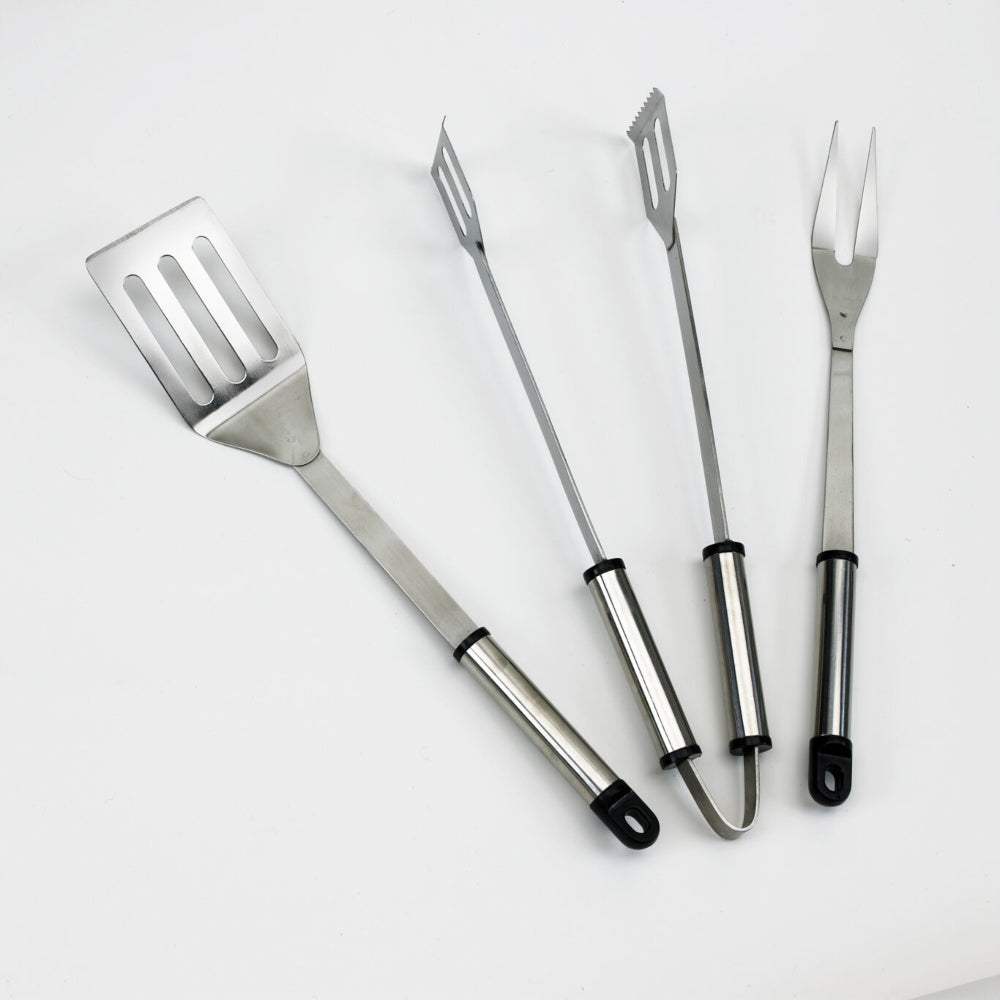 Grab the essentials and get yourself barbecue ready with a Grill Chef stainless steel tool set, featuring a fork, tongs and turner. Each tool is 37cm in length, offering a comfortable grip and lengthy handle for a safe cooking distance. Made from stainless steel. Includes: Fork, Turner & Tongs. Hook holes in handle for hanging. 37cm in length.