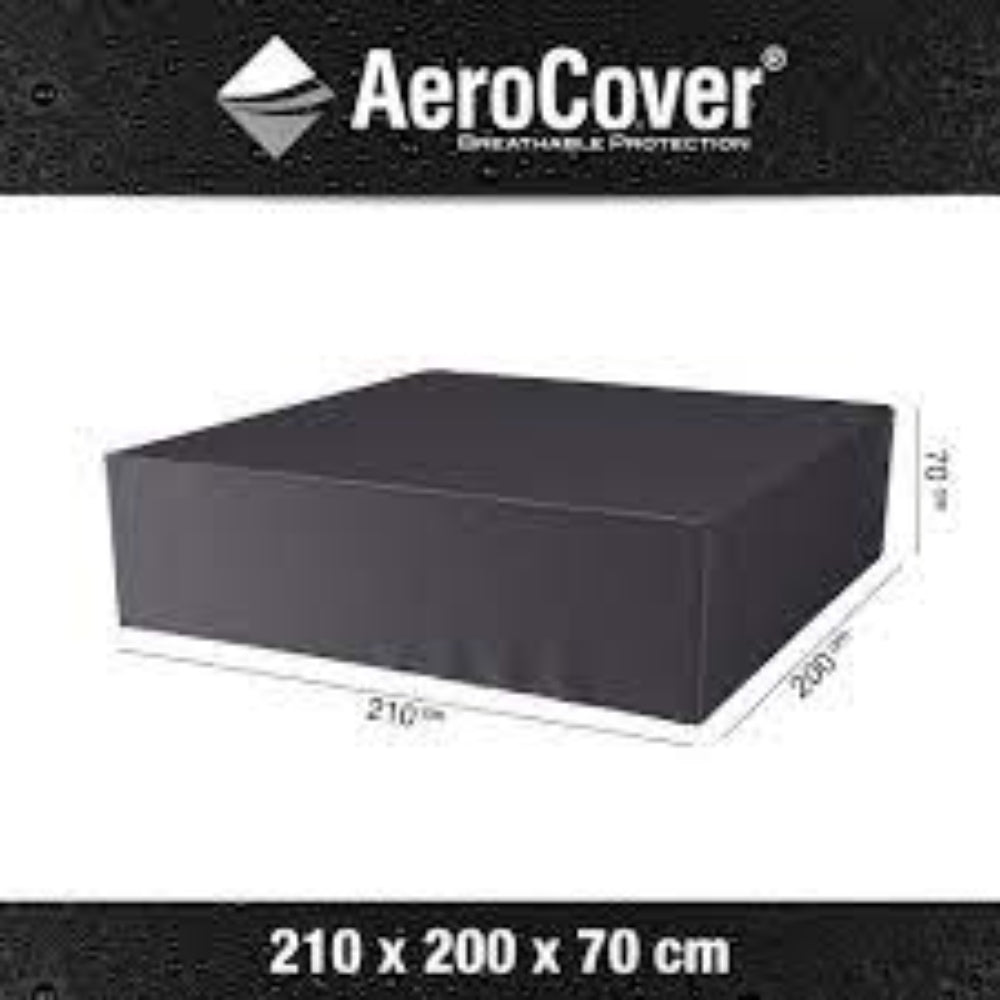 Lounge set cover from AeroCover. Breathable lounge set cover for lounge sets 210x200xH70 suitable for lounge sets with 2 chairs and a sofa, 4 chairs or 2 sofas. The table can be pushed into the sofa. AeroCovers are breathable, water resistant, reduce condensation and prevent mold. The fabric has a high color fastness due to the dyed fibers. An Aerocover cover extends the life of your garden furniture. AeroCovers are made of strong and lightweight ripstop polyester. They are easy to handle and take up little space when not in use. The cover has a drawstring with 2 stoppers for a good fit. Includes handy storage bag. AeroCover fabrics are 100% waterproof, the seams are, just like any other cover, splash-proof.