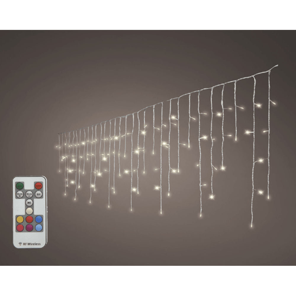 The Lumineo 150 LED Dancing Icicle Lights are a beautiful and festive addition to any holiday decor. These lights feature a total length of 5.85 meters and boast 150 LEDs that create a stunning cascading icicle effect. These lights are perfect for decorating your home, yard, or event space during the holiday season. They can be used indoors or outdoors, making them versatile and easy to customize to suit your needs. The LED bulbs are energy efficient and long-lasting, ensuring that you can enjoy their bright and beautiful glow for many holiday seasons to come. The dancing icicle effect adds a touch of whimsy and fun to your decorations, making them stand out from traditional string lights. These lights are sure to impress your guests and create a festive atmosphere wherever they are displayed. Bring some holiday cheer to your space with the Lumineo 150 LED Dancing Icicle Lights!