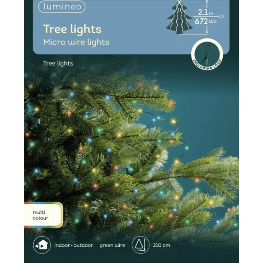 16 strings of 42 LEDs CE - non replaceable bulbs For 2.1m - 7ft tree Lead cable: 8m - IP20 transformer. String length including ring: 220cm. Indoor/outdoor: Indoor and outdoor. Number of bulbs: 672. Cable colour: Silver. Functions: Steady. LED colour: Multicolour. LED size: Micro. Distance between 1st and last bulb: 210.