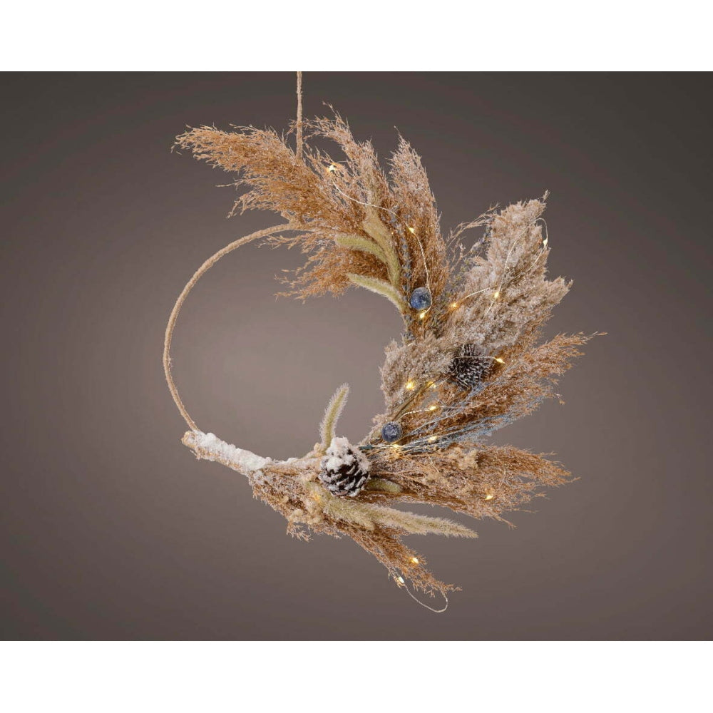 Add a touch of natural beauty to your home with the Lumineo BO 20 Led Wreath. This 40cm wreath is adorned with dried flowers and plumes, creating a rustic and elegant look. It features 20 warm white LED lights that add a soft glow to your décor, perfect for creating a cozy atmosphere during the holidays or all year round. Hang it on your front door, above your fireplace, or anywhere else in your home to instantly elevate your space. This wreath is battery operated, making it easy to place anywhere without the need for an outlet. Bring a touch of nature into your home with the Lumineo BO 20 Led Wreath with Dried Flowers and Plumes.