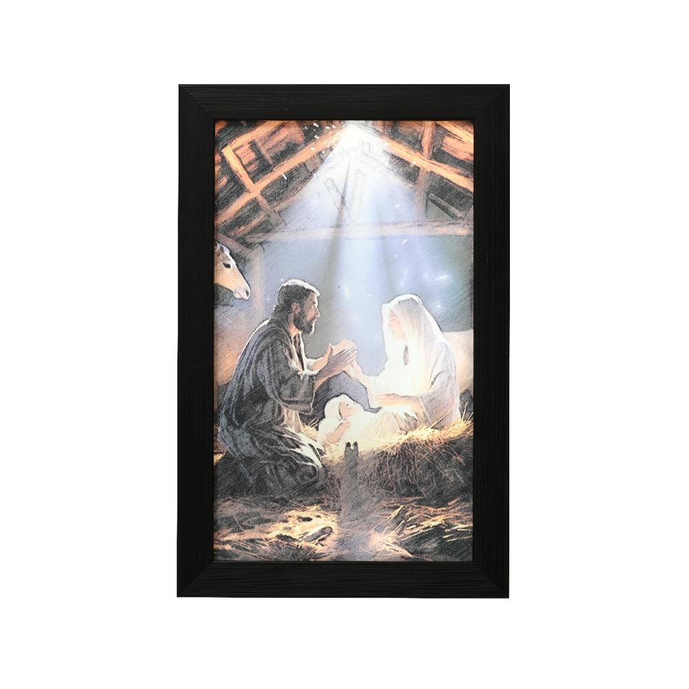 The Lumineo BO Led Nativity Canvas (18 x 28 cm) is a decorative frame canvas used for Christmas or holiday decoration. This canvas artwork likely features a nativity scene illuminated with LED lights, providing a warm and festive ambiance.