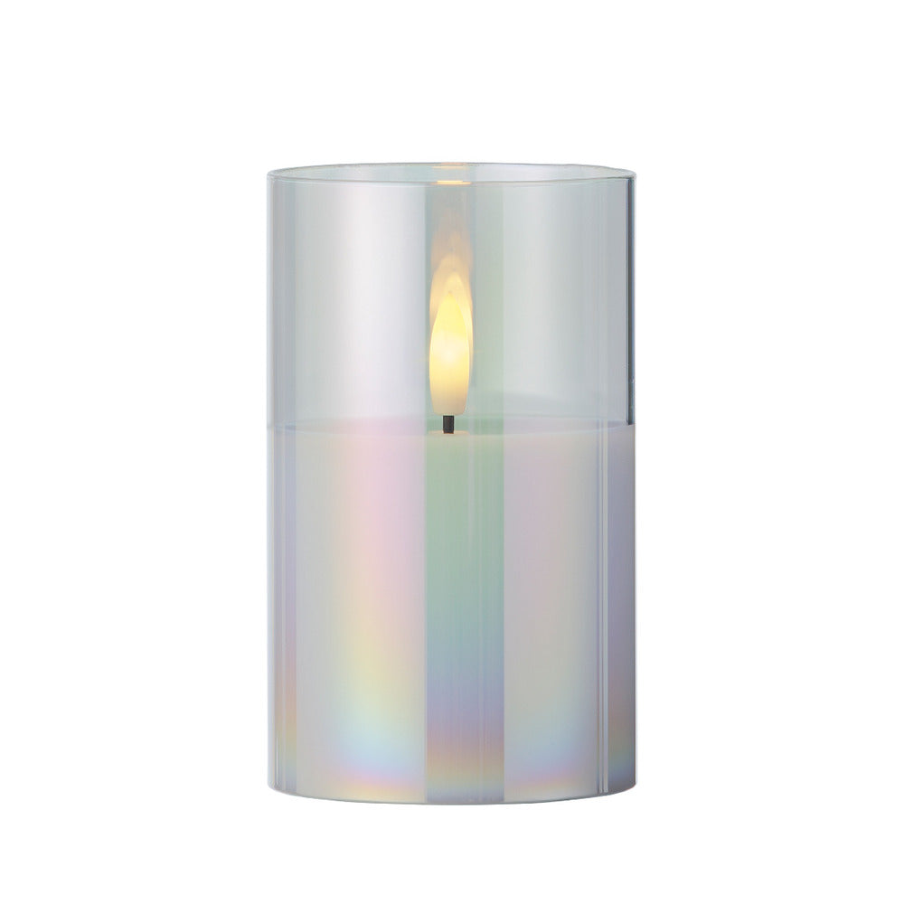 Illuminate your space with our B/O LED Wick Candle Glass! Available in two sizes, 12cm and 17cm, this iridescent candle will add a touch of warmth and ambiance to any room. No need to worry about flames or messy wax with our battery-operated LED wick. Bring a cozy glow to your home today! Key Features: Size: 12cm. Colour: Iridescent Glass. Bulb Colour: Warm White. Battery Operated. 2 x AA Batteries Required (Not Included). Timer Function: 6hrs/18hrs. Suitable For: Indoor Use Only.