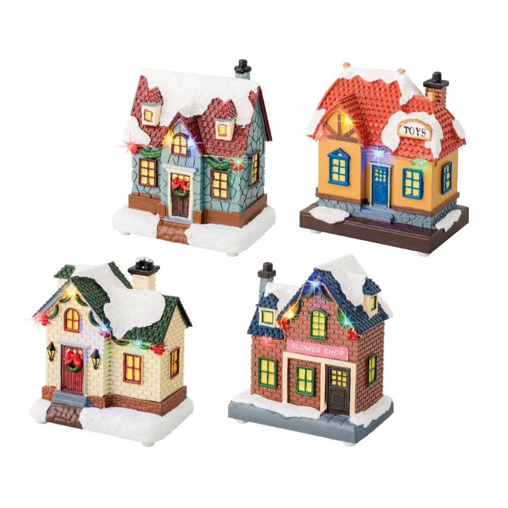 Illuminated Christmas House Transform your home into a festive winter wonderland with this delightful Illuminated Christmas House, perfect for the holiday season! This enchanting, handmade indoor decoration illuminates in a vibrant, multi\-coloured glow with its micro LED lights, bringing the magic of Christmas to your living space. - Dimensions: 10 cm high, 8.5 cm wide, and 5.5 cm long - Features 4 steady-function micro LED bulbs, bathing your room in multi\-coloured brilliance - Crafted from durable plastic, ensuring it withstands seasonal use - Powered by 2 AAA batteries, providing up to 48 hours of delightful illumination - Designed for indoor use—perfect to place on your mantel or windowsill Embrace the cheerful charm of this Illuminated Christmas House, adding a touch of joyous sparkle to your festive decorations. Easy to set up, this battery-operated, eye-catching piece is guaranteed to spread holiday cheer and create a warm, merry atmosphere in your home.