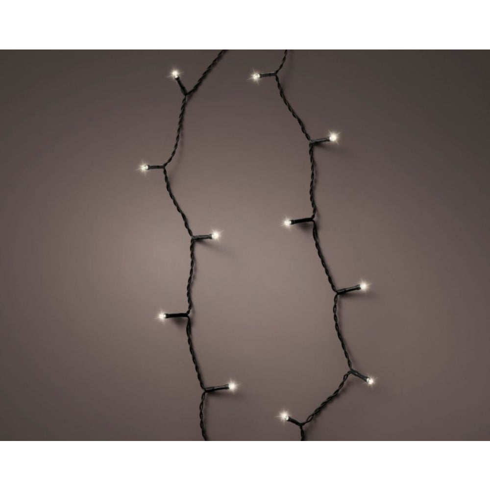Lumineo Tree Lights Durawise Warm White 350 cm Light up your holiday season with the Lumineo Tree Lights Durawise Warm White 350 cm. These lights are perfect for adding a warm, inviting glow to your outdoor Christmas display. - Made from durable PVC material for long-lasting use - Total length of 350 cm with a convenient 7.5 cm spacing between bulbs - Features an 8-function twinkle effect for a magical ambiance - Comes with a black cable that seamlessly blends with foliage - Powered by 3 AA batteries, providing up to 360 hours of illumination These energy-efficient lights are designed for easy outdoor use and include a handy 6-hour timer to ensure hassle-free operation. Their 5mm LED bulbs emit a charming warm white light, creating a festive atmosphere in any setting. Bring the holiday cheer to your outdoor spaces with these reliable and stylish Lumineo Tree Lights.
