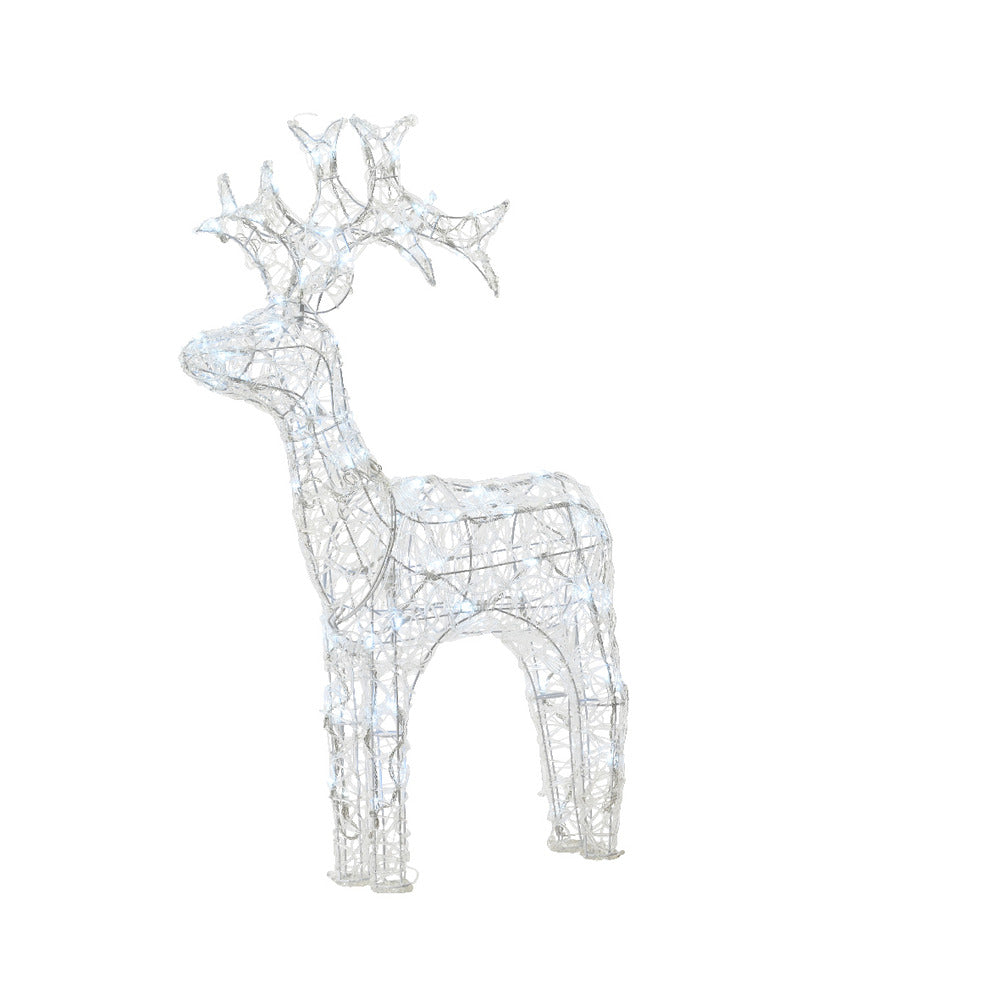 Lumineo Illuminated Figure - Reindeer 36.5 cm Cool White Bring a touch of winter wonderland to your garden with the Lumineo Illuminated Figure - Reindeer. Perfect for decorating your outdoor space, this charming reindeer is here to light up your festive season with joy and brilliance. - Crafted from soft acrylic material for a delightful appearance - Dimensions: 36.5 cm in length, 12 cm in width, and 61 cm in height - Equipped with 50 cool white 5mm LED bulbs for a shimmering display - Features a flashing effect to enhance the magical festive atmosphere - Comes with a transparent cable and transformer, making it suitable for outdoor use Not only does this glowing reindeer spread cheer with its stunning cool white lights, but it also allows for easy integration into your outdoor décor with its sleek, transparent cable. The included 8-hour timer lets you set it once and enjoy hassle-free operation throughout the evening. Transform your outdoor space into a winter haven with this enchanting creation, and let its magical glow captivate your guests and loved ones.