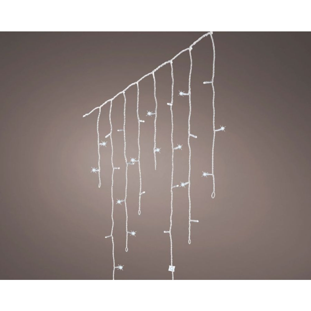 Cable colour: transparent. Distance between bulbs: 8.5cm Distance between strings: 15cm Functions: 10 Function twinkle effect. Indoor/outdoor: Outdoor IP class: IP-44 Lead cable length: 800cm LED colour: Cool white LED size: 5mm Number of bulbs: 720 Number of strings: 120 Plug type: GB Power type: Transformer Timer: 8 hr Length longest string: 70cm Quality mark: CE