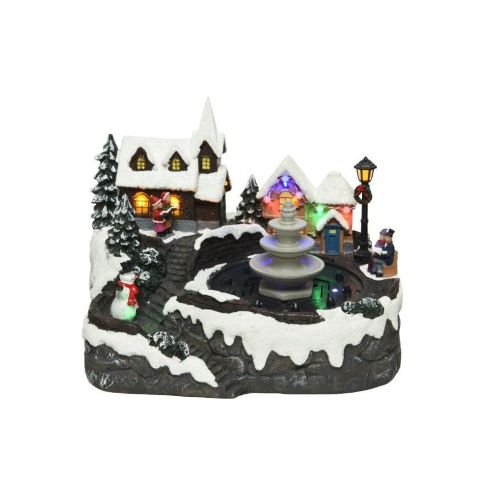 Add a touch of elegance to your Christmas village with this stunning Lumineo Village with Water Fountain. This beautifully detailed piece measures 20.5 x 27.5 x 20.5cm and features a charming water fountain that adds a serene and picturesque element to your holiday display. Whether you place it in the center of your village or on its own as a standalone decoration, this Lumineo Village with Water Fountain is sure to create a striking focal point in your Christmas decor.