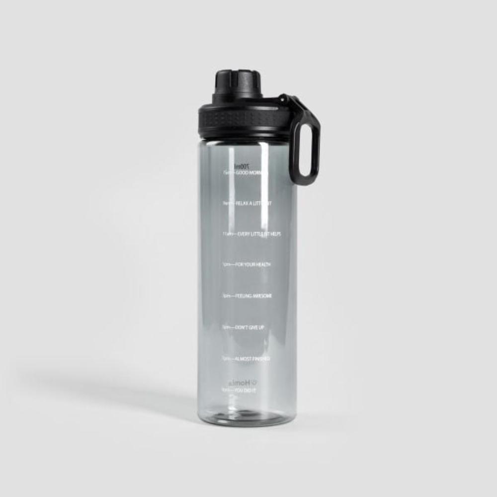 700 ml capacity - ideal for work or training Protected mouthpiece for comfort and hygiene when drinking Lightweight material does not weigh down handbags and rucksacks Decorated with a measuring cup to encourage regular use of water Water bottle 700 ml graphite with measuring scale Adequate hydration is the basis for well-being and beauty. That is why it is always worth having a bottle with you, from which you can take a refreshing sip at any time. The HOMLA LUNARE bottle not only makes it convenient to carry drinks with you, but also supports healthy habits with its graduated scale, reminding you to drink regularly throughout the day. Purpose You can fill the LUNARE bottle with water or any other beverage, such as juice, lemonade, iced tea or cocktails. It is ideal for the office, training, a long walk or a trip. Its black surface is decorated with motivational slogans which provide an additional impulse to take care of systematic hydration. Drinking comfort is ensured by the special mouthpiece, which remains perfectly clean thanks to the cover. Material The LUNARE bottle is made of Tritan. Tritan is a plastic material that resembles glass, but is much lighter. Damage-resistant, it does not contain harmful compounds BPA, BPS or any bisphenols. Safe in contact with drinks and food, it does not absorb odours or alter taste. The bottle should be washed by hand.