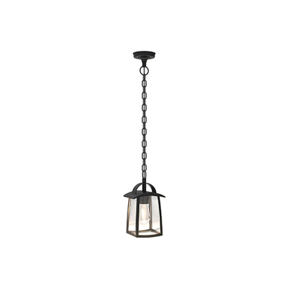 Kelsey outdoor pendent 1 light E27 Colour: Matt Black. Product dimensions dxwxh (mm): 170 x 143 x 906. Material fixture: heavy-duty aluminium. IP44. Fitting lighting source: E27. Watt (max wattage): 40W. Feature: the kelsey series adds a classic pendant to the family. The glass creates a unique look showing off the bulb inside. Use a decorative bulb to create your own design expression.