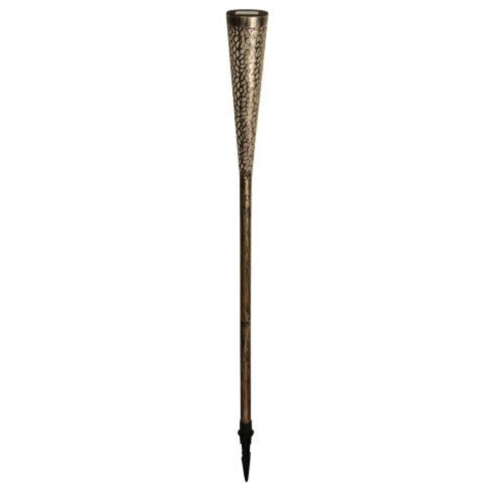 The 115cm high solar torch "Plymouth" is a gem for your garden! The torch made of metal and plastic is equipped with 36 up and down flaming LEDs. This suggests that there is a real flame inside the torch. The LEDs together have a light output of 15 Lumen and the punched out motif creates an extra beautiful light effect. The torch comes with a large spike that is 15 cm high, which makes it very easy to stick the torch in various places in garden soil. This torch will provide extra atmosphere along the garden path or border, around the terrace and can also be placed in a large planter. A lamp with various possibilities!
