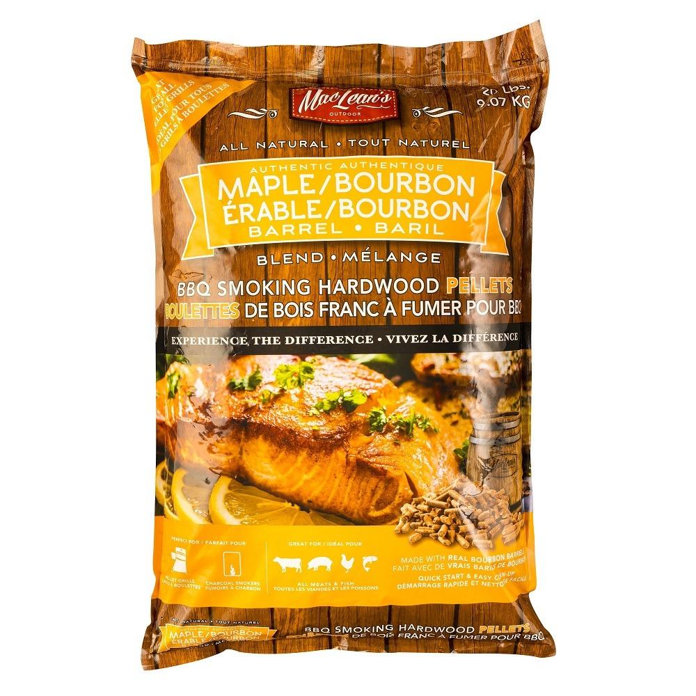 MacLean's Maple / Bourbon Barrel BBQ Smoking Hardwood Pellets Great for all meats; beef, ribs, pork and poultry plus vegetables Perfect for pellet grills and charcoal smokers 100% All-natural pellets no additives, no artificial flavors, chemicals, or glues The Barrels and blended woods are sourced across North America 9kg bag