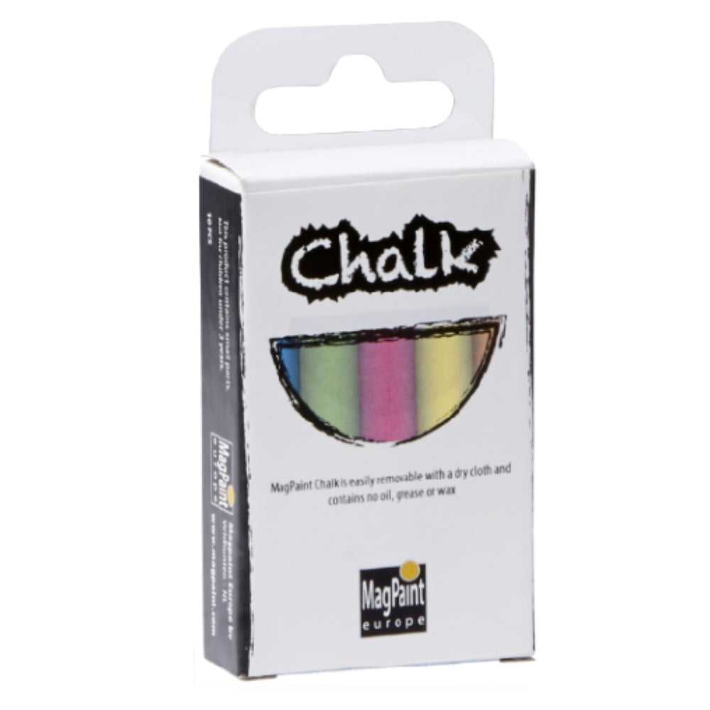 Set of 10 white coloured crayons: blue, yellow, green, pink and orange. Materials: Chalk without oil.