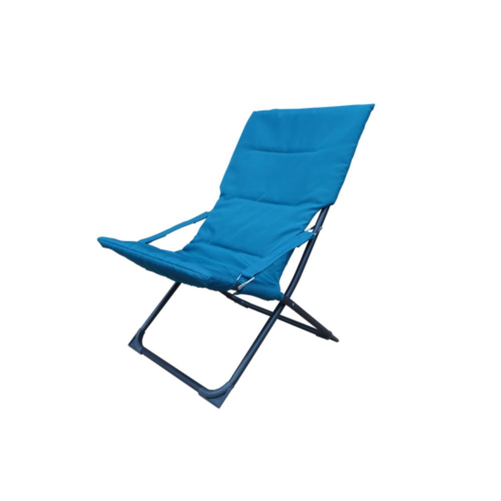This loggia chair MARSELLA can be easily placed in a small patio , in a garden or on a balcony , with a comfortable cushion seat , it is convenient for the rest ; Easy to fold and to carry , the frame is in steel with powder coating for a good resistance outdoor and the seat is in sponge padded polycoton to suit the body , the open size of this chair is L82 x l63,5 x H 93 cm color blue. The modern design of the chair makes it versatile and suitable for various outdoor spaces. The powder coating on the steel frame ensures durability and the cushion seat provides comfort for long periods of relaxation. The chair is also easy to fold and store, making it convenient for various settings. The blue color adds a pop of color to any outdoor space.