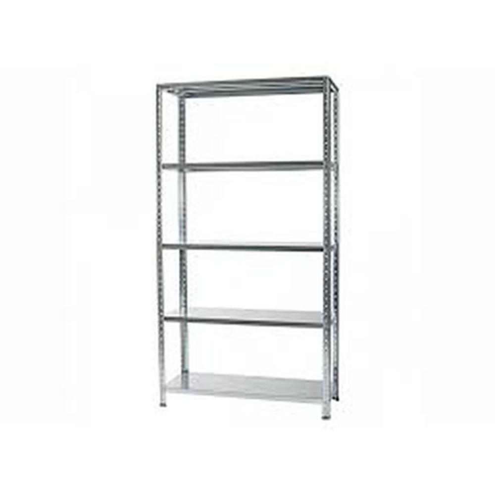 Composition: 5 shelves 100x40 cm, with bolt reinforcement. 8 corner pieces 1m. 4 plastic feet.