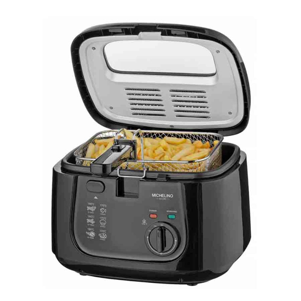 Capacity: 2.5L. Output Maximum 1800W Infinitely adjustable thermostat up to 190 2 control lights (operation and standby) Removable lid with viewing window and filter.