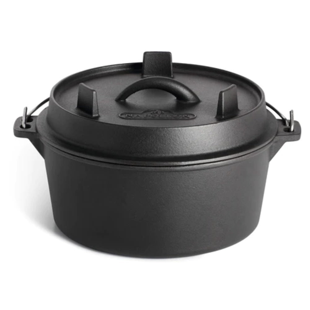 Napoleon Cast Iron Dutch Oven 4.5QT provides a 4.5-Quart, Cast Iron Dutch Oven that is just right for cooking on the barbecue. Cast iron is one of the best conductors of heat, distributing and retaining it for long periods of time to ensure food stays warm. Slow cooking for large numbers is the perfect use for this accessory. Use it anywhere, on or in the oven, the barbecue, and side burners, over or directly in charcoal, and even in your fire pit. This versatile Cast Iron Dutch Oven is great at making soups, stews, beans, and even baking bread. Both the lid and bottom feature integrated legs and the lid even doubles as a cast-iron frying pan. Elevate your cooking wherever you are with the Cast Iron Dutch Oven. Clever, multifunctional, and easy to maintain, every backyard benefits from the addition of a Napoleon barbecue accessory.