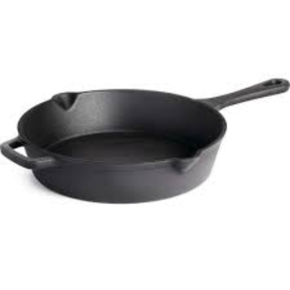 Napoleon 56053 Cast Iron Frying Pan provides a premium piece of cookware for your kitchen. Featuring durable cast iron construction, this pan offers a time-tested design with excellent heat conduction. Perfect for use with your grill, side burners, or even your oven, this pan features integrated pour spouts to go directly from your cooking appliance to your table for easy serving. Features Premium Construction - Heavy duty cast iron construction for time-tested durability and performance Convenient - Integrated pour spouts for easy serving