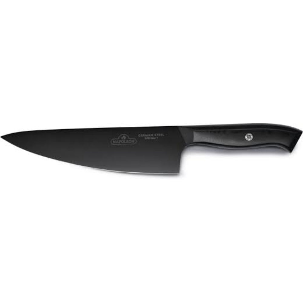 Use the Phantom Chef's Knife and you will never want to use another knife to prep your meals again. This titanium-plated steel blade is razor-sharp; easily gliding through whatever food you are working with. The ideal, all-purpose 8" (20cm) Chef's Knife will meet all of your cooking needs. The steel runs the full length of the knife and is well-balanced from tip to tang. The dual riveted handle provides ergonomic comfort while you slice, chop, dice, and mince. So whether you are a gourmet grill master or a fanatical foodie, the Phantom Chef's Knife is perfect for all of your food prep needs. Clever, multifunctional, and easy to maintain, every kitchen benefits from the addition of a Napoleon barbecue accessory. Our accessories provide you with the essentials to create delicious grilled food and then some to enhance your cooking arsenal with a wide variety of creative additions to broaden your culinary horizons. This unique blade is made from titanium-plated steel Razor-sharp steel with excellent edge-retention The full tang blade is dual-riveted in the handle for solid performance The well-honed edge glides through food without tearing This 8" (20cm) all-purpose chef's knife features a contoured handle for superior grip and balance Chop, dice, mince, and slice effortlessly