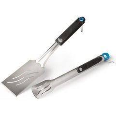 Every grill-master needs a spatula and a pair of tongs in order to prepare great food on the bbq. This Napoleon 2 piece toolset is made from durable stainless steel for longevity and sturdiness. They feature an ergonomic, soft-touch grip on both handles. The extra-long spatula will easily flip and turn anything you wish to grill, easily managing food with its serrated edge and bladed tip. The pull tab on the tongs easily locks and unlocks and both barbecue tools are easily stored thanks to the built-in tool hangers. Whether you are refining your favourite cooking techniques on the barbecue or learning an entirely new way of preparing a meal, Napoleon has the barbecue accessories you need. Clever, multifunctional and easy to maintain, every kitchen benefits from the addition of a napoleon barbecue accessory. Our accessories provide you with the essentials to create delicious grilled food and then some to enhance your cooking arsenal with a wide variety of creative additions to broaden your culinary horizons.