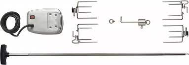 Grilled meals from the rotisserie simply taste best. They are juicy and delicious and a real eye-catcher. With the professional rotisserie set for large barbecues, you can produce the quality you know from restaurants directly in your own garden. The large hexagonal spit rod made of stainless steel with the high-quality motor is equipped for all tasks. The meat forks with 4 prongs hold the food in place with the easy-to-use wing screws. There's even a counterweight built in, just in case you're grilling for an entire army. Suitable for all Napoleon grills of the PRO 500, P500 and LEX 485 series. Features: - 12 mm stainless steel hexagonal skewer with a length of 87 cm - 4 forks with 4 stainless steel tines each, which hold the food securely in place - powerful motor (torque of 25 kg/cm) with 1.8 m cable and matching holder - Maximum weight of the food: 11.5 kg