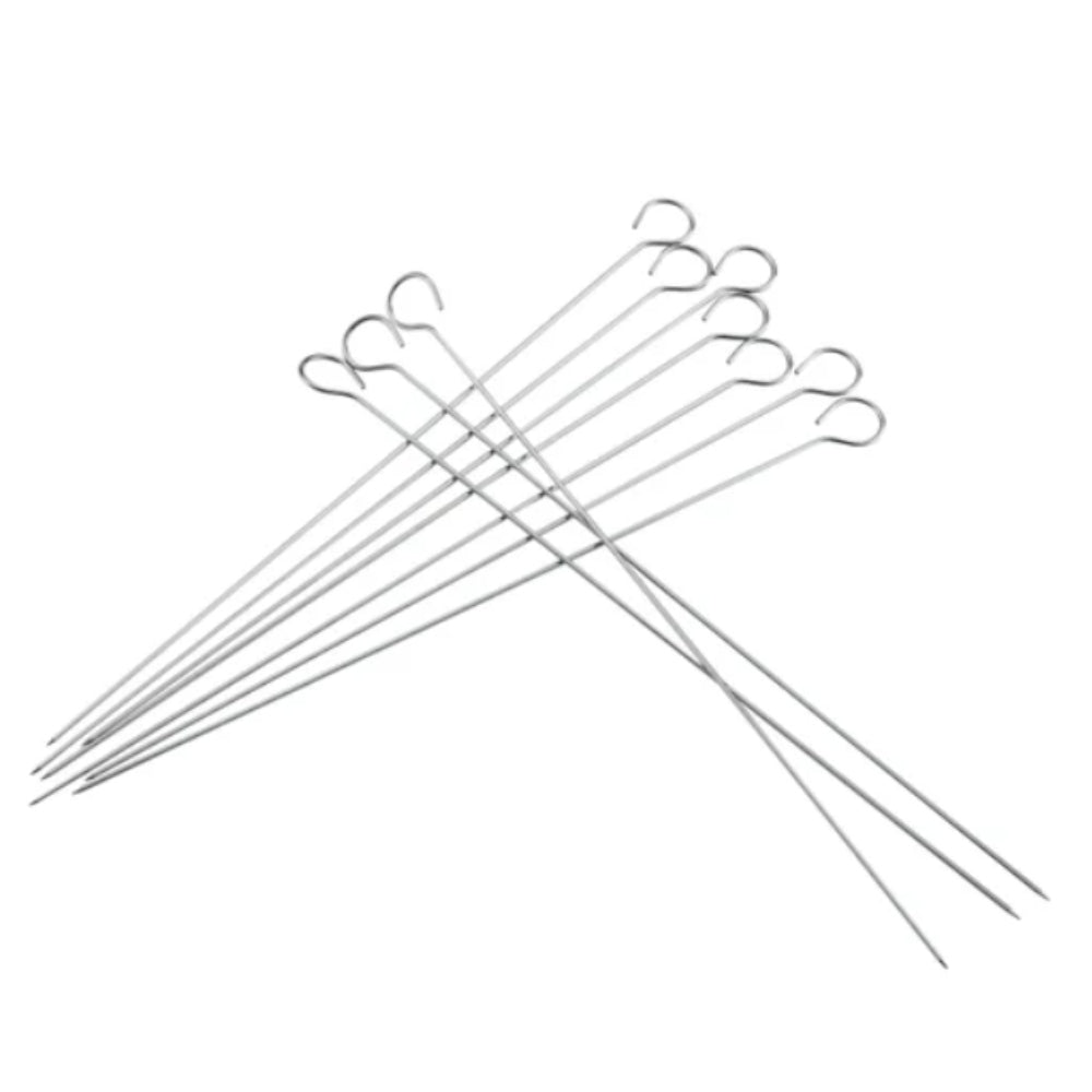 Enhance your grilling experience with these durable and versatile stainless steel BBQ skewers. Designed to withstand high heat and provide even cooking, these skewers are a must-have for any barbecue enthusiast. Features: Made from high-quality stainless steel for long-lasting durability Flat design prevents food from spinning, ensuring even cooking Sharp pointed ends for easy skewering of meats, vegetables, and fruits Heat-resistant handle for safe and comfortable handling Easy to clean and dishwasher safe Specifications: Material: Stainless steel Length: Medium size What's in the box? Set of stainless steel bbq skewers