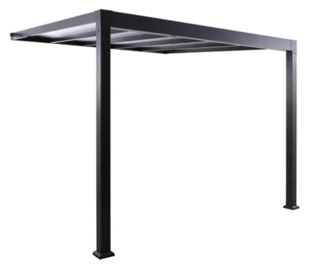 A solid and waterproof pergola to enjoy your family meals without fear of rain showers. A family meal in all weather Enjoy meals on your patio even on stormy days with the Naterial Borea backed pergola. Its waterproof polycarbonate roof is transparent to let through the light, while blocking the rain that crashes your gathering with family. Designed in aluminum, its structure is fixed to the wall and composed of 2 feet, creating a solid assembly, resistant to water and rust. Its slightly inclined roof has a water drainage system, via a gutter that flows through the inside of the pergola’s feet, so as not to splash your guests or dirty your patio. Its size allows it to protect an outdoor table from 4 to 6 people or a small garden lounge. Stylish outdoors even in the rain The straight lines and the anthracite colour of the pergola reflect the codes of stylish style, reinforced by the choice of aluminum as the main material. For a harmonious rendering, its square pillars have screw covers, and the Borea pergola comes in several colours according to your outdoor style. This pergola is easily combined with any type of outdoor furniture (garden lounge, dining area, outdoor kitchen etc.). Pair it with the Oris II garden lounge or corner lounge to enjoy outdoor coffee even on the darkest days. Maintenance and assembly tips Its aluminum structure guarantees you great ease of maintenance, a damp cloth and a neutral soap are enough to clean it. Feel free to use a garden hose to clean inaccessible areas of the roof. For mounting, allow at least 2 people to attach it more easily to the wall of your facade. This pergola is fixed on any type of rigid wall, such as concrete, brick, or wood, using suitable screws and anchors. Follow the assembly instructions carefully to ensure a safe and stable installation. With the Naterial Borea backed pergola, you can enjoy your outdoor meals with family and friends all year round, protected from the elements. Make the most of your outdoor space with this stylish and practical addition to your patio or garden.