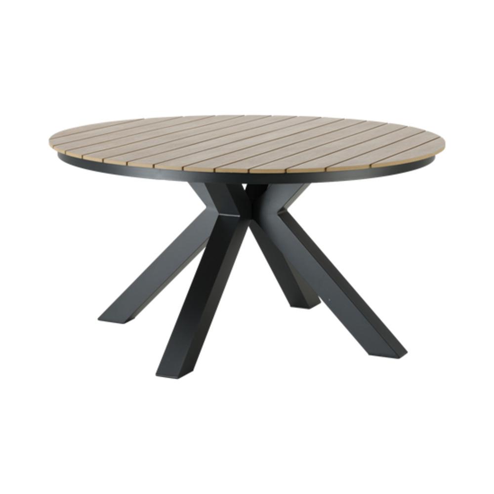 A modern and comfortable dining area to receive your loved ones A friendly evening with friends The Clara round garden table seduces with its sleek design and practicality. Designed to accommodate up to 6 guests, its round shape promotes exchanges between guests. It is made up of an aluminum stations and a synthetic wooden tray. This tray adds a natural charm to the whole, without the maintenance of traditional wood. With its entirely made of aluminum structure, this table is a light, easy to move, and resistant to humidity and rust to accompany you season after season. A mix of material for an industrial rendering Combination between naturalness and modernity, the Clara range, with its mixture of anthracite aluminum and synthetic wood, offers a warm and trendy charm to your terrace for an industrial rendering. Its geometric shapes amplify its contemporary aspect. For a harmonious dining area, combine this table with chairs in the Clara range, and in the corner garden furniture and the range of the range to extend the meal with a moment of relaxation. Easy to maintain materials Practical on a daily basis, the Clara table is easy to maintain. Its synthetic wood, with its authentic wood appearance, requires little maintenance. A wet cloth and Marseille soap is enough to restore brightness, as well as its aluminum structure. In winter, remember to protect your table from a breathable cover to preserve it from bad weather. Repairable, spare parts are available to extend the life of your furniture. With its versatile design, the Clara round garden table is perfect for both casual gatherings with friends and family and formal dinner parties. Its sleek and modern design will elevate any outdoor dining space, while its practicality and durability ensure that it will last for years to come. So gather your loved ones and enjoy a friendly evening around the Clara round garden table.